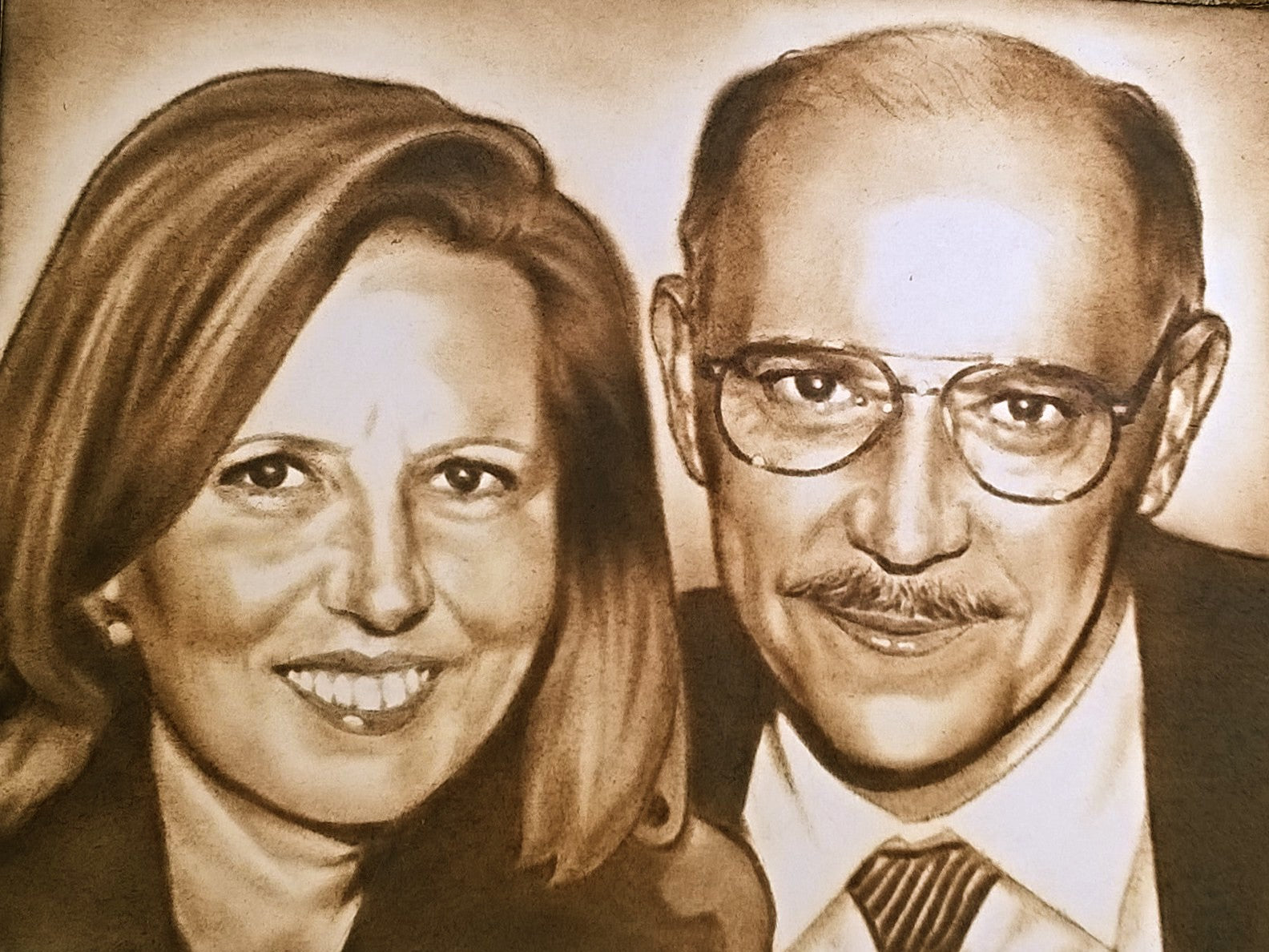 Ritratto personalizzato creato dall'artista Stefano Bonfatti, eseguito interamente a mano con il solo uso di una piccola fiamma ossidrica. Ordina il tuo ritratto "dipinto" con il fuoco in pochi click!