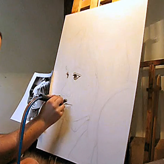 A lavoro finito viene applicata una vernice trasparente protettiva per preservare il ritratto e conservarlo al meglio.